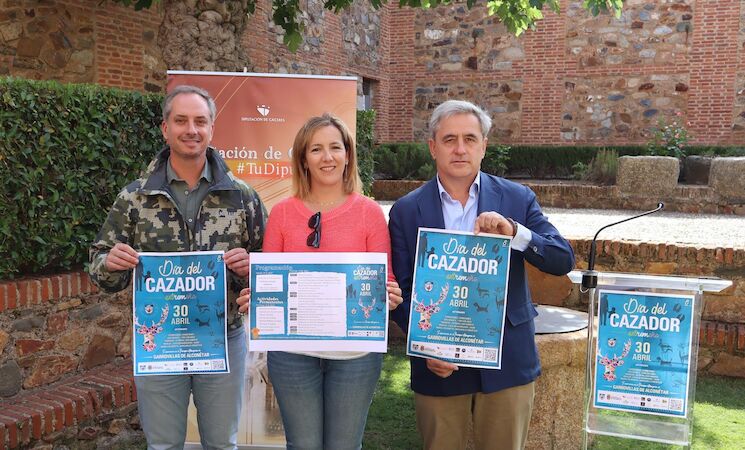 El presidente de la Federación Extremeña de Caza (Fedexcaza), José María Gallardo, y la alcaldesa de Garrovillas de Alconétar, Elisabeth Martín, han presentado este viernes en la Diputación de Cáceres la octava edición del Día del Cazador Extremeño.