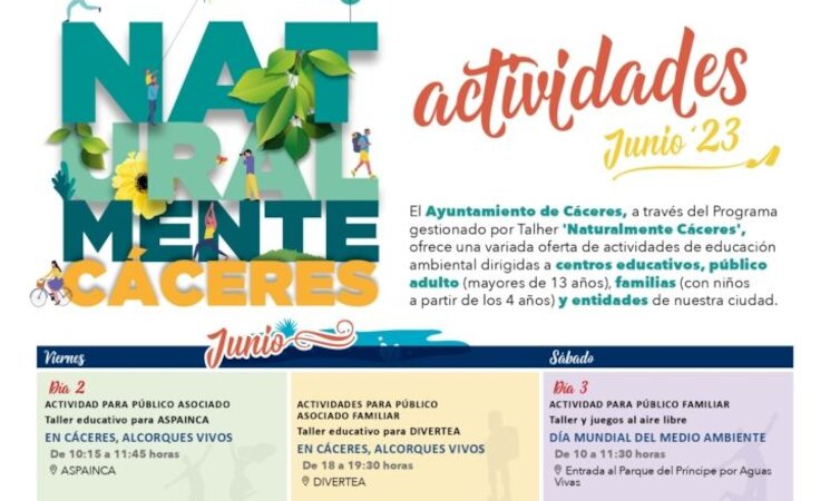 Cabe destacar que todas las actividades son totalmente gratuitas y requieren reserva previa. La inscripción se hará por orden de reserva hasta completar plazas a través del correo electrónico reservas@naturalmentecaceres.com