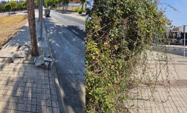 Además, ha criticado la situación de unos matorrales que hay en la rotonda de acceso al área comercial donde estas hierbas, "que tienen unos espinos que son auténticas cuchillas", ha dicho, han invadido la acera con el peligro que esto supone, ya que pueden provocar cortes "graves y serios".
