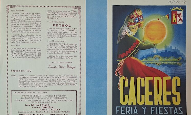 El Palacio de la Isla de Cáceres expone, durante el mes de septiembre, dentro de su programa de difusión 'Documentos del mes', el programa oficial de las ferias de San Miguel del año 1950, celebradas entre el 29 de septiembre y el 1 de octubre. Un programa que permite aproximarse al mundo del ocio festivo en el Cáceres de los años 50 del pasado siglo.