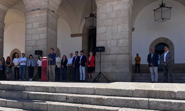 En el acto han participado el alcalde de Cáceres, Rafael Mateos, y concejales de todos los grupos políticos que conforman la corporación municipal como PSOE y Unidas Podemos, y al que también se ha unido Vox con la presencia de su portavoz, Eduardo Gutiérrez, que ha asistido por primera vez en esta legislatura.