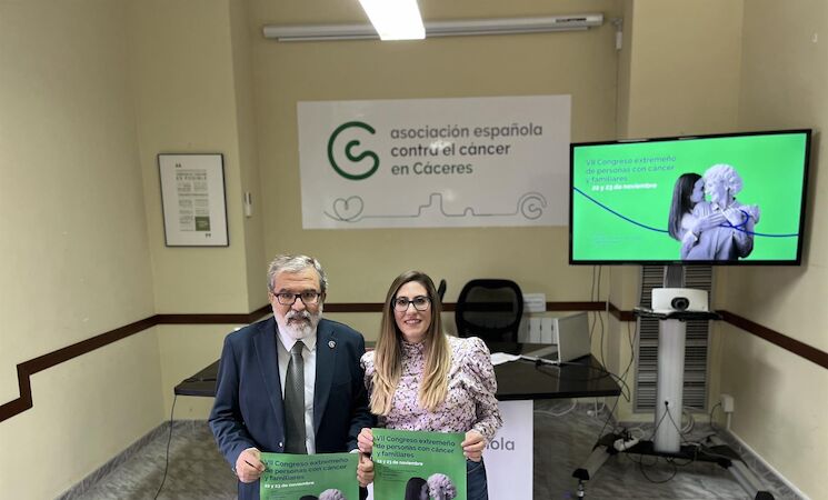 El congreso ha sido presentado este miércoles por el presidente de la Asociación contra el Cáncer en Cáceres (AECC), Pedro Pastor Villegas, y por Beatriz Parra, paciente oncológica y miembro del comité organizador.
