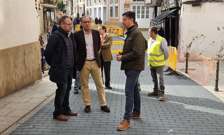 El alcalde de Cáceres, Rafael Mateos, y el concejal de Infraestructuras, Víctor Bazo, han visitado la finalización de las obras de peatonalización en las calles Parras y San Antón.