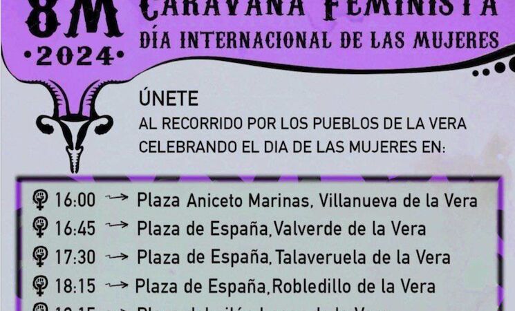 Finalmente, la Caravana Feminista también pasará a las 18:45 horas por la Plaza del Pilón de Losar de La Vera y, finalmente, terminará en Jarandilla de la Vera a las 20:00 horas aproximadamente.