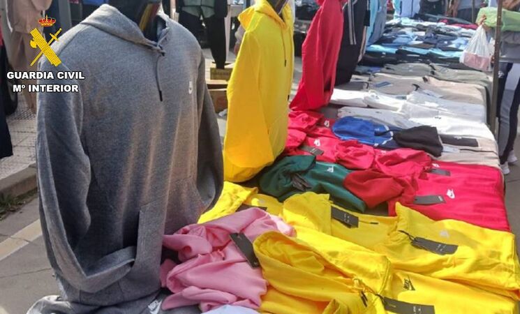 En concreto, los hechos ocurrieron el pasado viernes, 15 de marzo, cuando agentes de la Guardia Civil que estaban realizando un servicio a pie por el mercadillo sorprendieron al ahora investigado vendiendo, en un puesto fijo, numerosas prendas falsificadas de conocidas marcas comerciales, que tenía expuestas colgadas de las barras de sujeción del puesto y sobre las mesas.