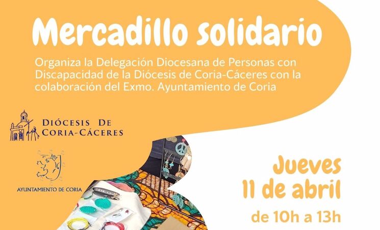 La Delegación Diocesana de Personas con Discapacidad de la Diócesis de Coria-Cáceres, con la colaboración del Ayuntamiento de Coria, organiza un mercadillo solidario y de sensibilización este jueves, día 11, en la Plaza de la Paz de 10,00 a 13,00 horas.