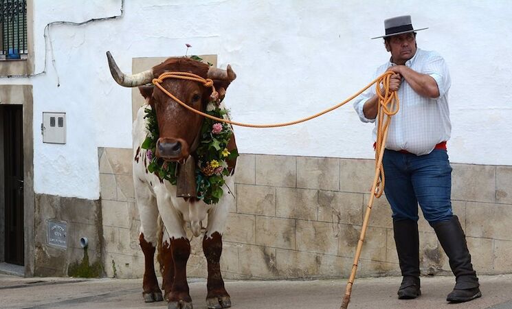 Los asistentes le colocaban guirnaldas de flores en el cuello, roscas de pan en los cuernos y se acercaban para arrancarles pelos del lomo con el que fabricar escapularios contra "el mal de ojo".