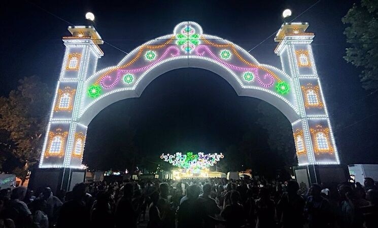 Un total de 503.187 puntos de luz iluminan el recinto ferial de Cáceres que se encendió anoche de forma oficial para dar paso a cinco días de fiesta. Una portada principal de 12,5 metros de altura y 16 metros de ancho da la bienvenida al ferial que cuenta con una decoración compuesta por un pórtico y 60 arcos festivos con colores en blanco frío, verde y rojo.