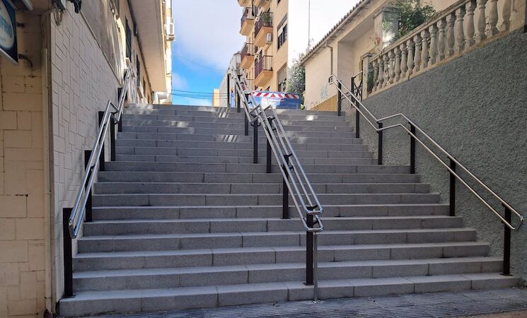 La escalera que comunica las calles Carvajal Lancaster y Alfonso IX en Cáceres ha sido reformada para mejorar su accesibilidad y la seguridad de los usuarios.