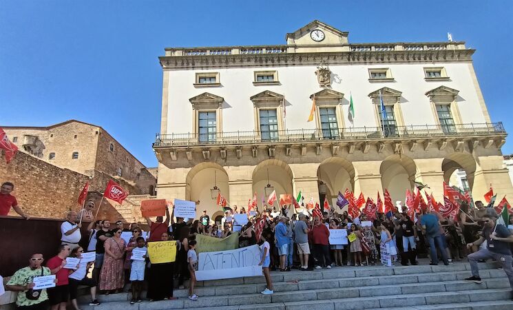 Este viernes, la mayoría de los 270 trabajadores y algunos familiares se han concentrado en las puertas del ayuntamiento cacereño tras la última propuesta planteada por la empresa en la reunión celebrada ayer jueves, que no es aceptada por los trabajadores.