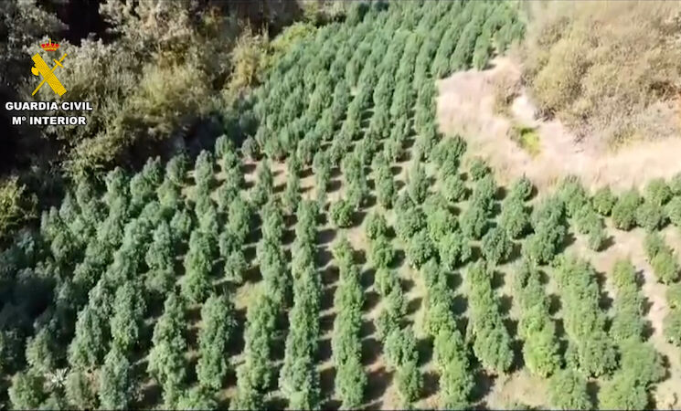 La plantación de marihuana se hallaba totalmente estructurada en hileras, contaba con dos edificaciones preparadas para el secado de las plantas y albergaba un pozo de sondeo con placas solares para suministrar el agua necesaria para su crecimiento, con un sistema de riego que abastecía la totalidad de la plantación.