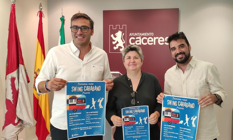 La Concejalía de Comercio del Ayuntamiento de Cáceres ha presentado este jueves la iniciativa 'Swing Caraband', una caravana móvil que ofrecerá este fin de semana espectáculos musicales y teatrales gratuitos con el objetivo de dinamizar el comercio local de la ciudad.