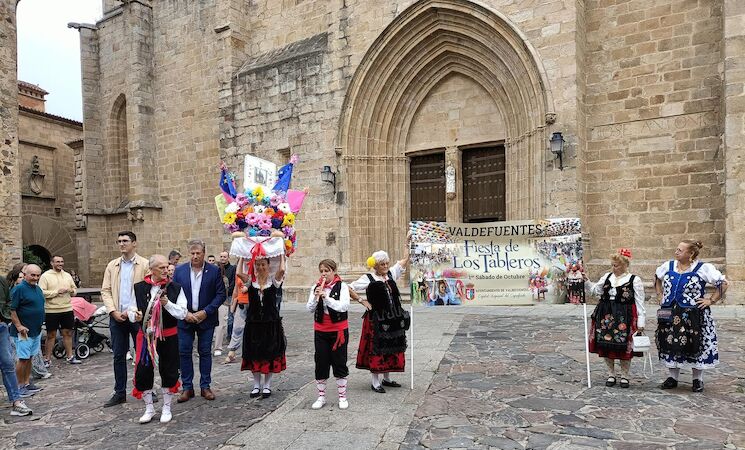 La presentación de este festejo ha tenido lugar este martes en el Palacio de Carvajal de Cáceres con la presencia del alcalde de Valdefuentes, Álvaro Arias; la diputada de Igualdad de la Diputación de Cáceres, Antonia Molina, y algunos de los participantes en los festejos en los que se contará con ocho tableros que llevan las mujeres sobre sus cabezas, con un peso aproximado de entre 10 y 15 kilos, y que están embellecidos de flores, dulces, panes y otros elementos.