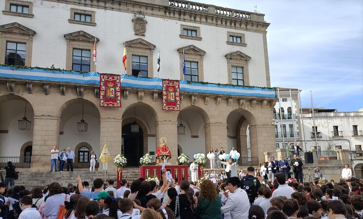 Por su parte, el obispo de Coria- Cáceres, Jesús Pulido, ha destacado que "hoy veo a la Virgen particularmente contenta porque aquí se siente la matrona de todos los cacereños, de los que la dicen madre y de los que no se lo dicen, porque es la madre de todos". "Aquí quiere dejar su huella de madre, y que de alguna forma contribuya a que todas las deliberaciones y todo lo que aquí decidan esté movido por ese amor materno y esa solicitud por todos, especialmente por los más necesitados", ha resaltado.