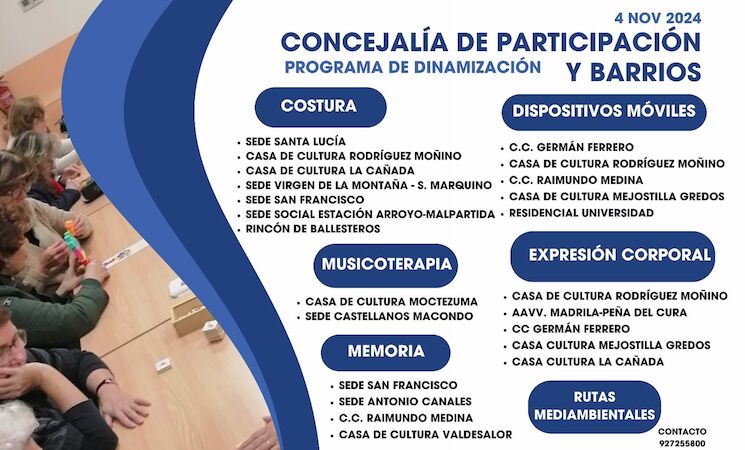 El programa se desarrollará desde el 4 de noviembre hasta finales de mayo de 2025. Se ofertarán 23 talleres gratuitos con 20 plazas cada uno, en horario de tarde, de lunes a viernes, dirigidos a población adulta. En total, son 460 plazas distribuidas en los centros cívicos, casas de cultura y asociaciones vecinales repartidas por los 5 distritos de la ciudad.