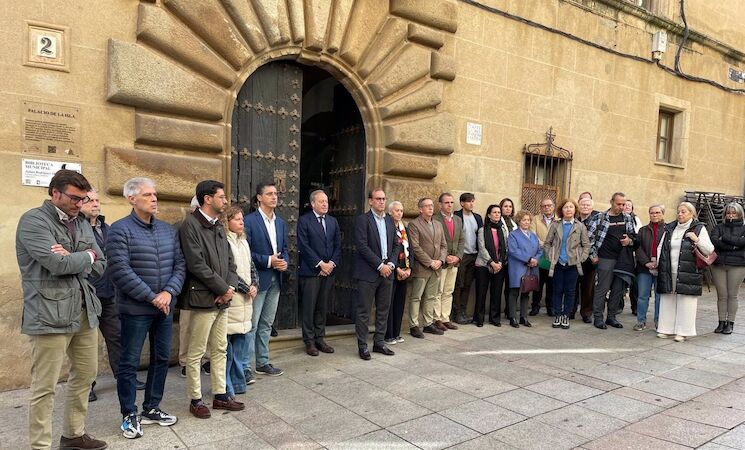 Miembros de la corporación municipal y trabajadores del Ayuntamiento de Cáceres han guardado este miércoles un minuto de silencio como muestra de apoyo a todos los afectados por los cuantiosos daños personales y materiales que ha dejado la DANA, especialmente en el levante y el sur de España.
