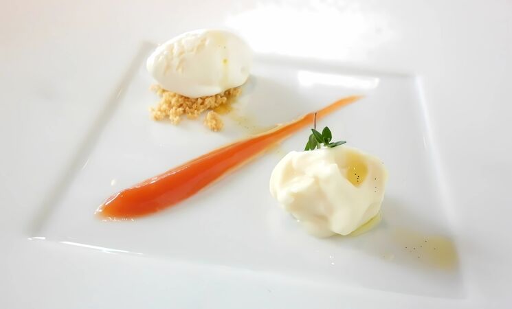 Entre ellos se encuentran platos salados, como el Tataki de gamo sobre crema suave de Torta del Casar, la Plumilla de ciervo con boletus edulis y salsa de Torta del Casar o las Carrilleras con parmentier de patatas violeta y Torta del Casar; combinaciones de dulce y salado, como el ante postre Binomio de Torta del Casar, membrillo trufado y aceite de vainilla , y dulces como la Mousse de Torta del Casar con gelatina de miel.