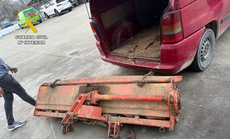 La Guardia Civil ha detenido a tres hombres, de 23, 28 y 54 años, respectivamente, al ser sorprendidos portando en una furgoneta con matrícula portuguesa rotocultivador para tractor, una máquina agrícola utilizada para la labor del terreno, valorado en 3.200 euros, que habían sustraído en una nave de la localidad cacereña de Gata.