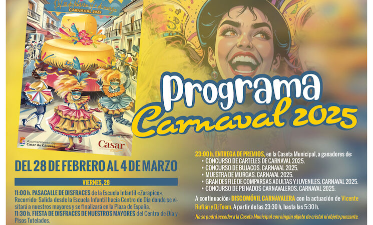 En concreto, ésta es una de las fiestas más arraigadas en los casareños y populares de la provincia y este año contará con más de 30 parejas de 'bujacos', los cuales han participado en el VII Concurso de Bujacos y cuya pareja ganadora, por segunda vez, presidirá el Gran Desfile de Comparsas adultas de este sábado, 1 de marzo.
