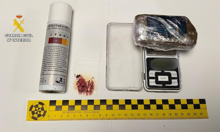 A su vez, comprobaron con un test de detección de sustancias estupefacientes que se trataba de hachís, ya que arrojó un resultado positivo a cannabis, según indica la Guardia Civil en una nota de prensa.