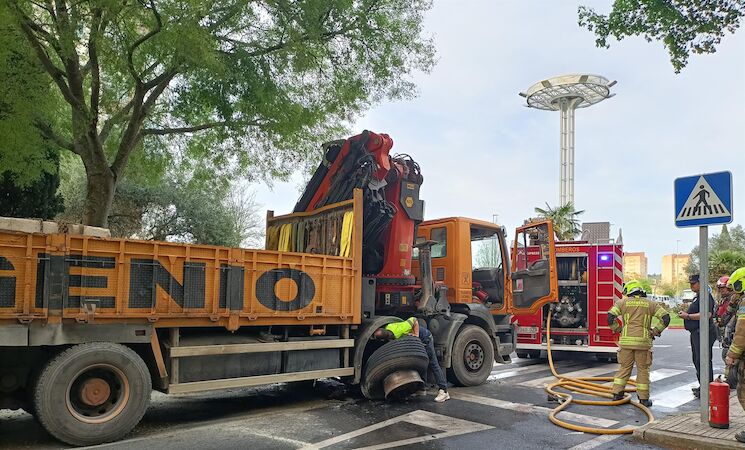 El reventón de la rueda de un camión que circulaba en la tarde de este miércoles por el barrio de Nuevo Cáceres ha provocado una gran explosión y una gran cantidad de humo, así como cortes de tráfico en varias calles de la citada barriada cacereña.