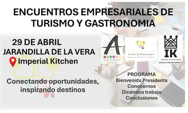 Este nuevo 'Encuentro Empresarial de Turismo' se celebrará en el espacio gastronómico Imperial Kitchen de Jarandilla de la Vera, el 29 de abril, a las 17h