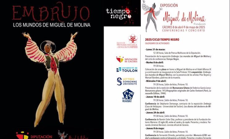 En concreto, la cita tendrá lugar en el salón de actos del edificio Pintores 10, en la capital cacereña, donde también se pueden ver trabajos de fotografía y pintura del alumnado de la Escuela de Bellas Artes Eulogio Blasco de la diputación, inspirados en la figura, la obra y los diseños de Miguel de Molina, uno de los personajes en torno al que gira esta edición de 'Tiempo negro'.