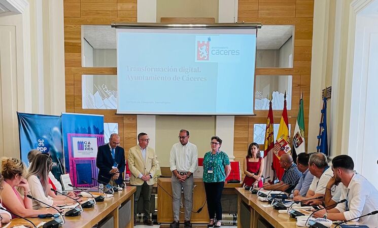 Un grupo de representantes de corporaciones locales de Moldavia, que participan en una actividad organizada por la Fundación EBS, ha visitado este martes las dependencias del Ayuntamiento de Cáceres para conocer el modelo de transformación digital del consistorio cacereño, así como aprender de su funcionamiento.