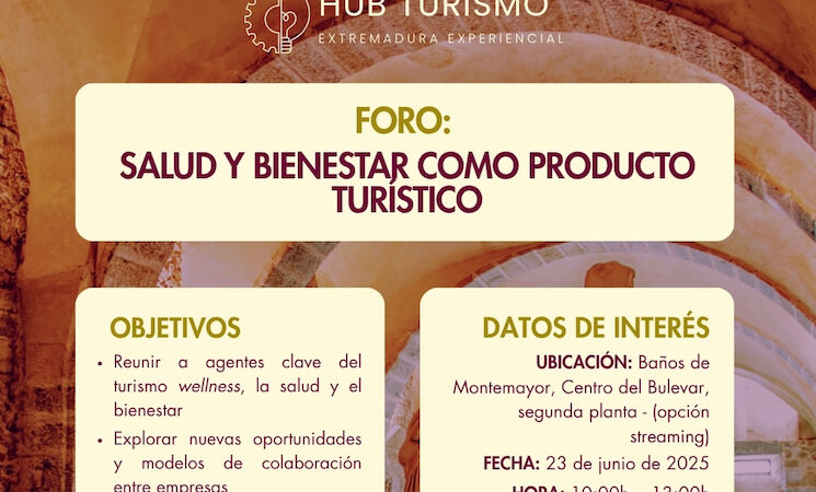Además, se presentarán casos de éxito y buenas prácticas, tanto a nivel regional como nacional, que servirán de referencia para el desarrollo estratégico de productos turísticos ligados al wellness en Extremadura.