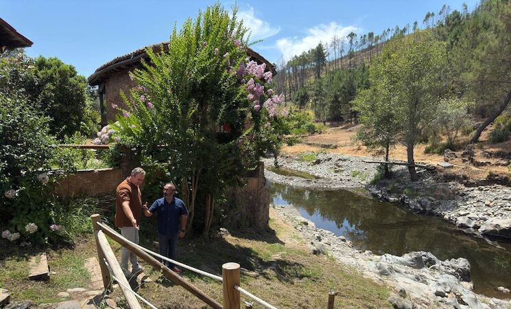 El presidente de la Diputación de Cáceres, Miguel Ángel Morales, ha visitado, acompañado del alcalde, José Luis Azabal, la alquería de La Muela, perteneciente a Pinofranqueado, donde se están ejecutando las obras para recuperar esta zona de baño dañada por la crecida del Río Esperabán.