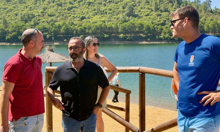 El presidente de la Diputación de Cáceres, Miguel Ángel Morales, ha visitado junto al alcalde de Cañamero, David Peña, la playa 'Cancho del Fresno', para estudiar una ampliación de los servicios que ofrece estas instalaciones que, desde 2023, viene renovando su Bandera Azul como reconocimiento a la calidad de sus aguas.