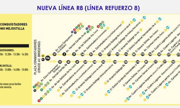 La nueva línea de autobús urbano R8 de Cáceres comenzará a funcionar el próximo jueves, 11 de septiembre, y por primera vez, el servicio de transporte urbano, llegará hasta el Polígono Empresarial Mejostilla.