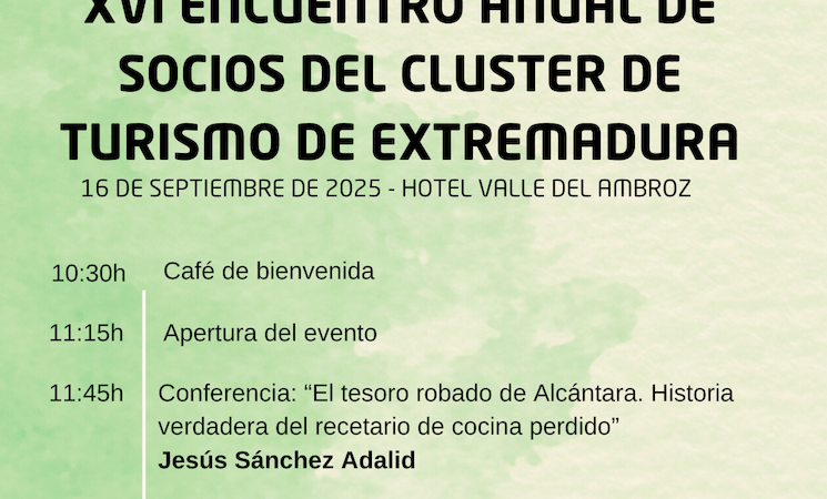 Cabe destacar que el Encuentro Anual de socios del Clúster del Turismo de Extremadura está previsto que sea inaugurado por el director de Turismo de la Junta de Extremadura, Óscar Mateos, y la alcaldesa de Hervás, Gloria Vizcaíno.
