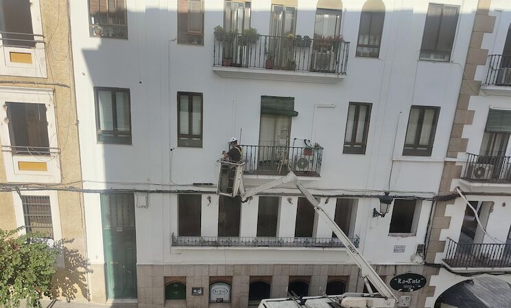 La empresa Henry ha comenzado en Cáceres el montaje de las luces de Navidad que decorarán las calles de la ciudad en esa época especial del año.