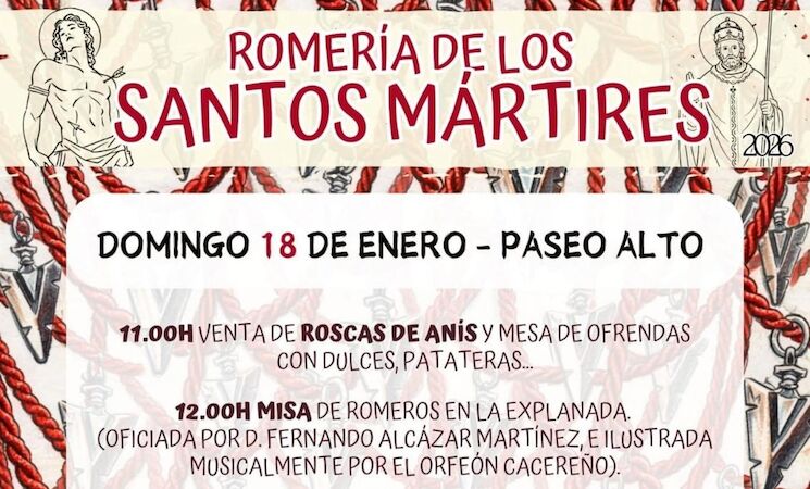 La romería de los Santos Mártires, San Fabián y San Sebastián, regresa un año más al Paseo Alto de Cáceres donde se celebrará este domingo, 18 de enero, con la participación de miles de cacereños en una de las citas más populares de la ciudad.