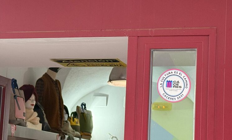 Los comercios de Cáceres se han unido a una campaña de apoyo a la candidatura de la ciudad a Capital Europea de la Cultura en 2031, de manera que decenas de comercios, bares, restaurantes y otros establecimientos extremeños lucen ya en sus escaparates pegatinas de apoyo.