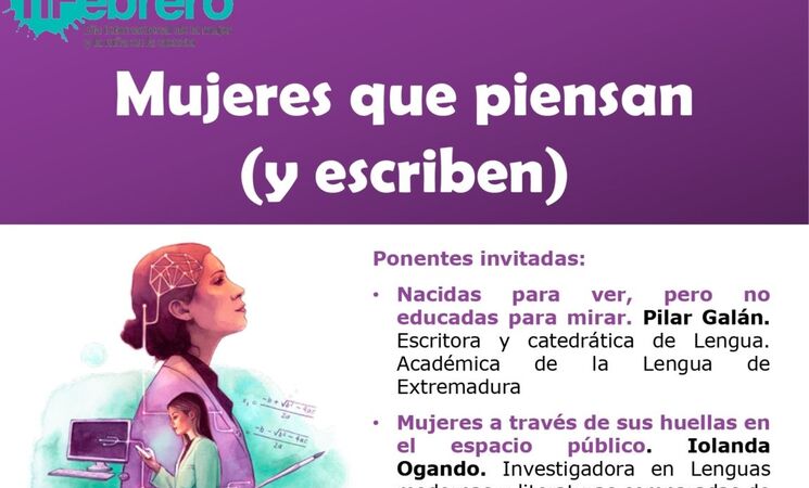 En concreto, la inauguración de la jornada correrá a cargo de la catedrática y académica de la Lengua en Extremadura, y también escritora, Pilar Galán, con la conferencia 'Nacidas para ver, pero no educadas para mirar'.