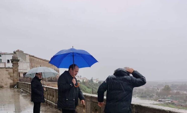 El obispo de la Diócesis de Coria-Cáceres, Jesús Pulido, ha visitado la localidad de Coria donde ha recorrido las zonas afectadas por las intensas lluvias de las últimas semanas, que han provocado una gran crecida del río Alagón y que también han afectado al terraplén cercano a la catedral cauriense con un importante desprendimiento de tierra.