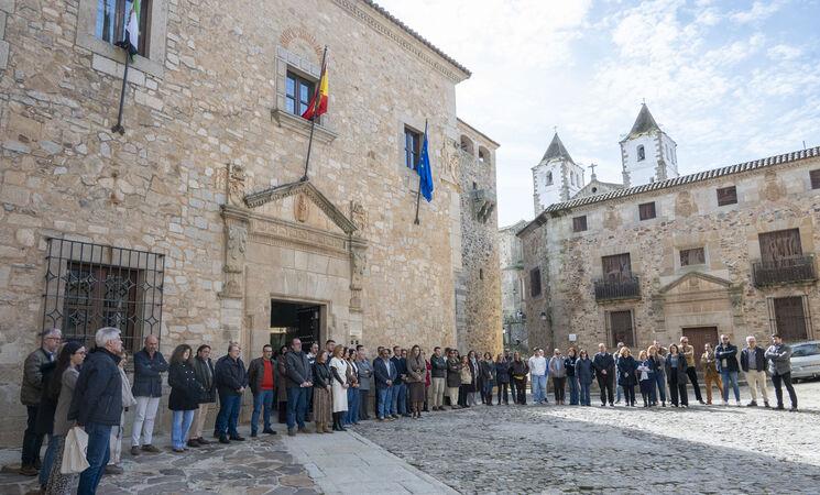 Así, a esta concentración silenciosa, convocada por la Federación Española de Municipios y Provincias (FEMP), se ha sumado el personal de los distintos centros de la diputación cacereña, como el Palacio Provincial, el Complejo Cultural San Francisco en Cáceres o el Complejo Cultural Santa María en Plasencia, entre otros.