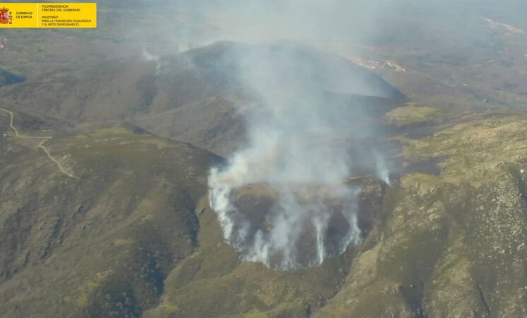Miteco despliega siete medios aéreos y dos brigadas para el incendio en Losar de la Vera