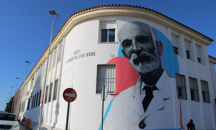 Inaugurado un mural en el CEIP Giner de los Ríos de Mérida encargado a Jonathan Carrasco