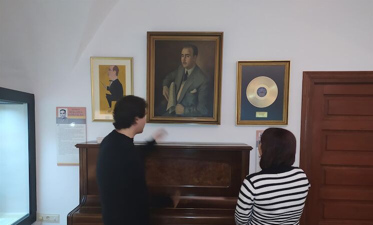 El mismo año que el maestro solano es nombrado Hijo Predilecto de Cáceres, en 1984, recibe un Disco de Oro por sus éxitos, que se expone ahora junto al citado retrato del artista.