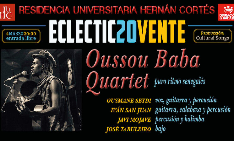 El grupo Oussou Baba Quartet actuará este miércoles, 4 de marzo, a las 20:00 horas en la Residencia Universitaria Hernán Cortés de Badajoz dentro del ciclo musical 'Ecletic20vente'.