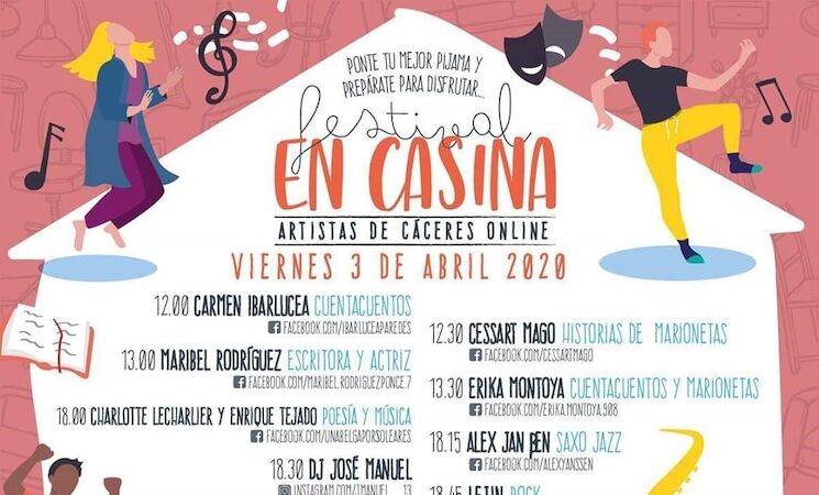 El festival online 'En casina', en el que participan más de 40 artistas cacereños de diversas disciplinas, ofrece este viernes, 3 de abril, quince nuevas actuaciones que se podrán seguir a través del perfil de las redes sociales de los participantes.