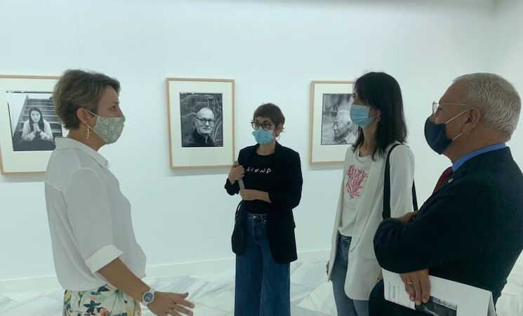 La secretaria general de Cultura, Miriam García Cabezas, acompañada por el subdelegado del Gobierno en Badajoz, Francisco Mendoza, ha asistido a la inauguración de la muestra ‘Entre artistas’, una colección de fotografías de Jean Marie del Moral.