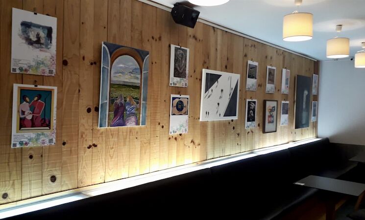 La exposición Cov Arte propone también arte impreso montado en cartón pluma para instalarlo en escaparates de las ciudades que quieran colaborar con el proyecto.