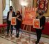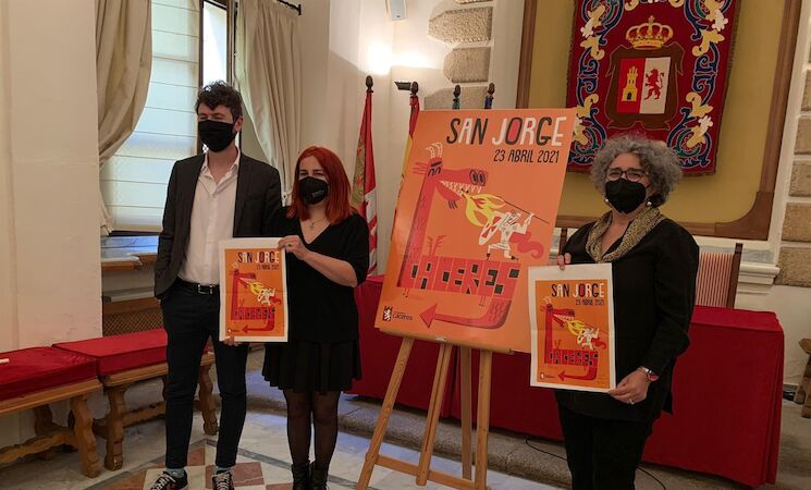 La alcaldesa en funciones, María José Pulido, la concejala de Cultura, Fernanda Valdés, y el ilustrador Fermín Solís, que se ha encargado por primera vez de diseñar el cartel de San Jorge, han desvelado este lunes el programa "reinventado" que se llevará a cabo para celebrar al patrón cacereño en esta situación de pandemia.