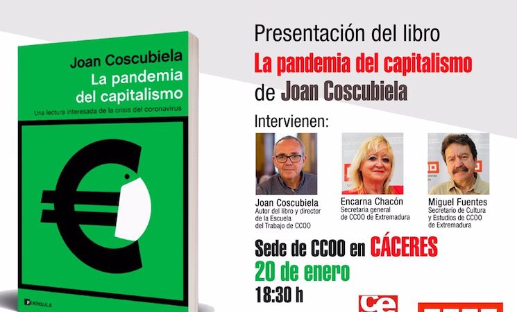 Joan Coscubiela presentará este jueves, 20 de enero, en la sede de CCOO de Cáceres, el libro 'La pandemia del capitalismo'.