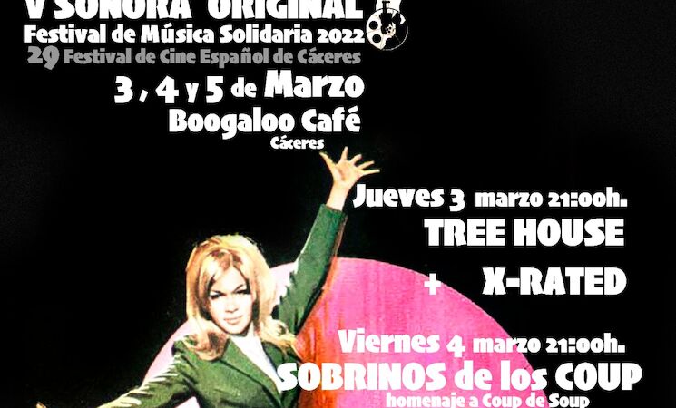 Nueve grupos participan en la quinta edición de Sonora Original, el Festival de Música Solidaria que organiza el Festival de Cine Español de Cáceres dentro de la programación de su vigésimo novena edición, que se celebra entre el 28 de febrero y el 8 de marzo.