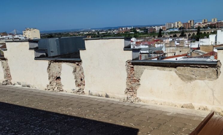 Los trabajos tratarán de frenar la pérdida de ese material para evitar la caída de restos de piedra y diversos materiales. Por tema de seguridad, y hasta que finalicen los trabajos, en el edificio se ha instalado una marquesina de protección para evitar que el desprendimiento de restos de materiales afecte a la zona de tránsito, según indica la Diputación de Badajoz en una nota de prensa.